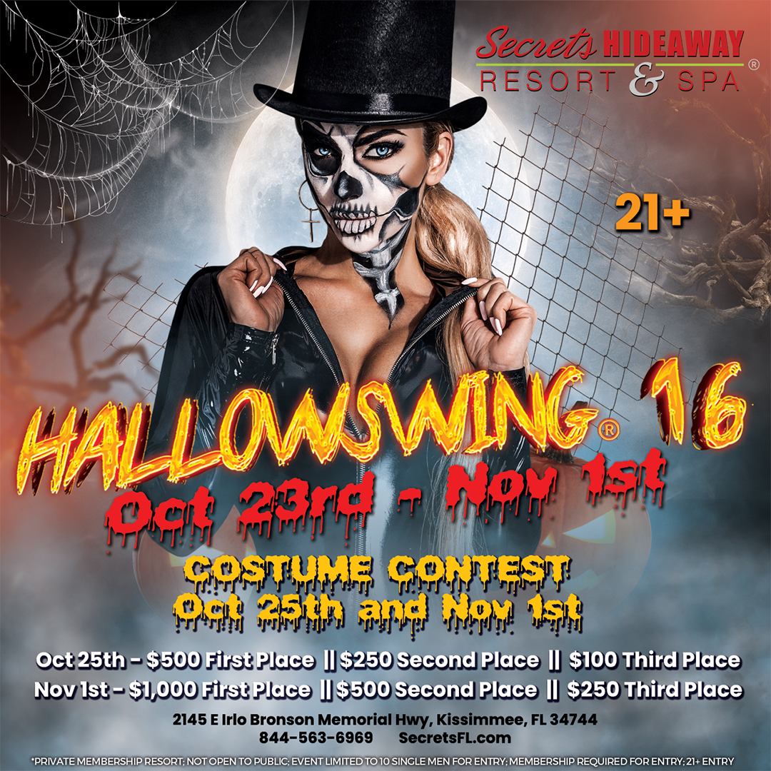 On Saturday, October 25th, the first week kicks off with Hallowglow, a night of neon thrills and electrifying vibes. Dress to impress and show off your most creative, glowing costumes for a chance to take home $500 for 1st place, $250 for 2nd, and $100 for 3rd. It’s the perfect way to light up the night and start Hallowswing® 16 with a bang. https://www.secretsfl.com/5531.event